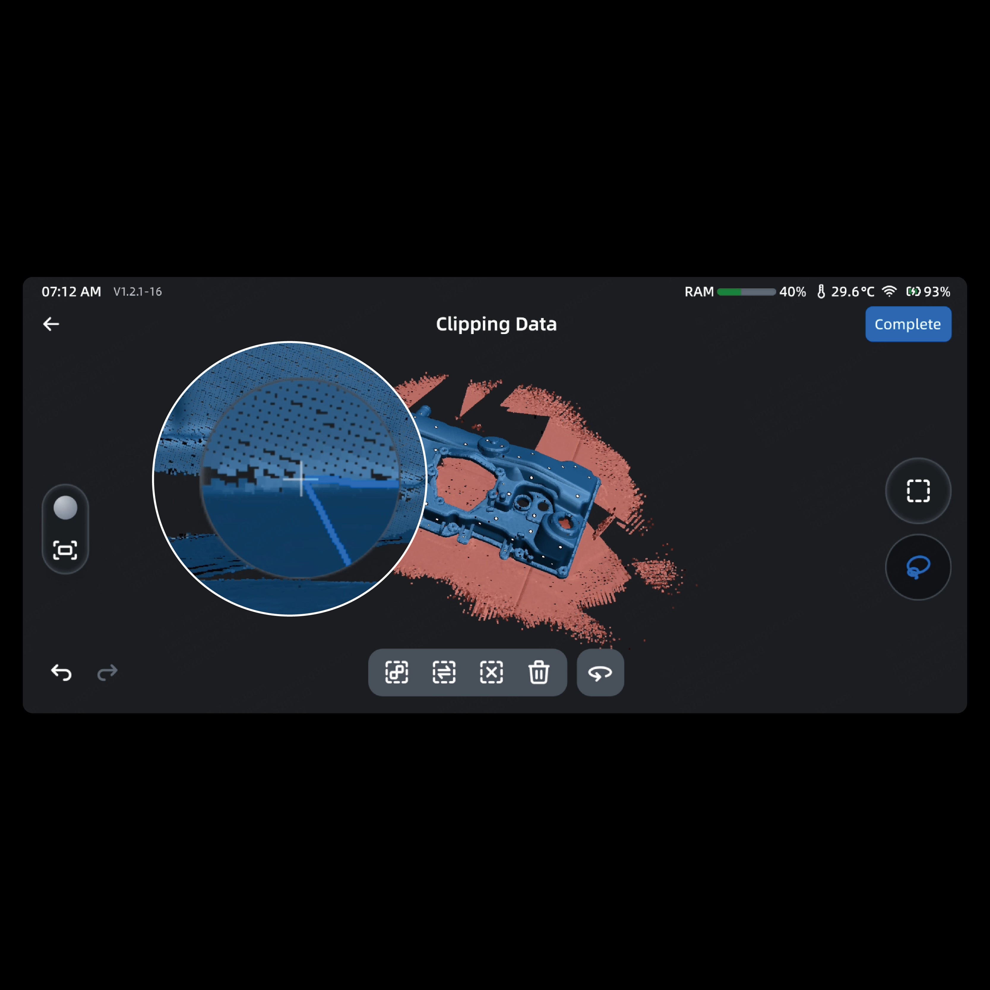 Connect domain & inverse for unnecessary points quick removing, Magnifier tool for clearer, detailed editing.