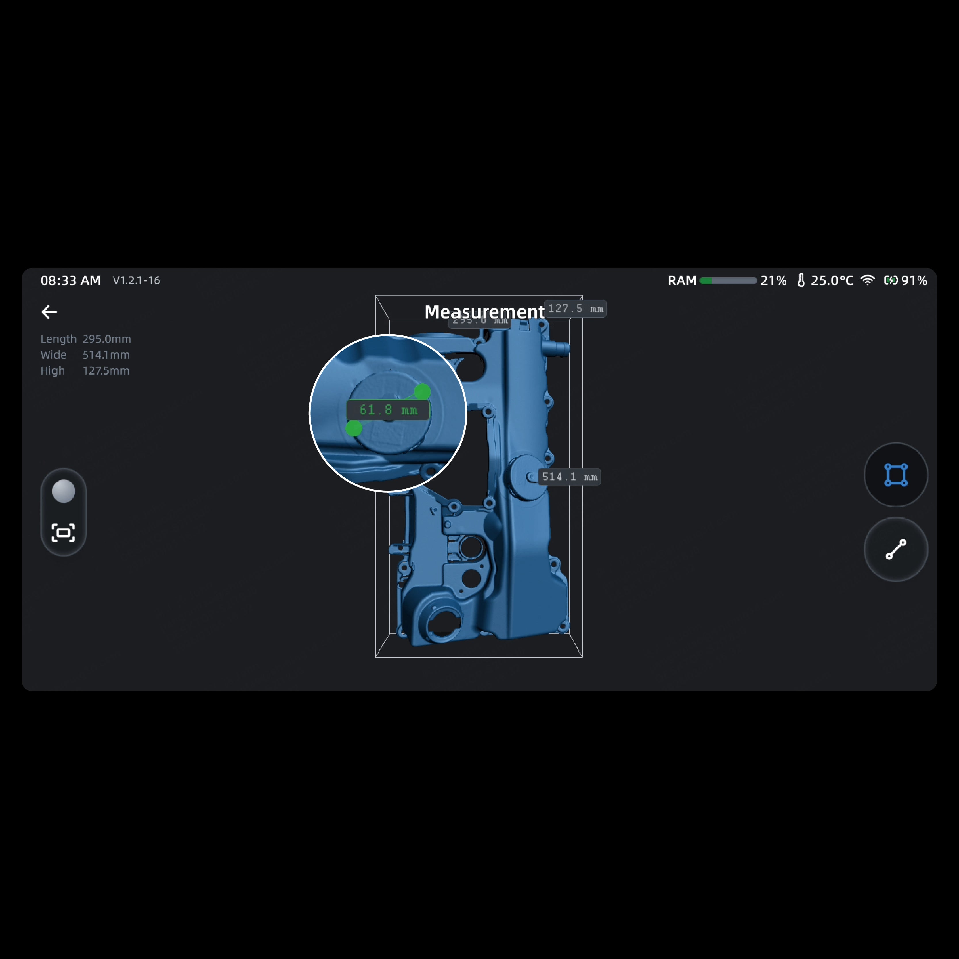 Quickly retrieve model dimensions — No traditional calipers needed.