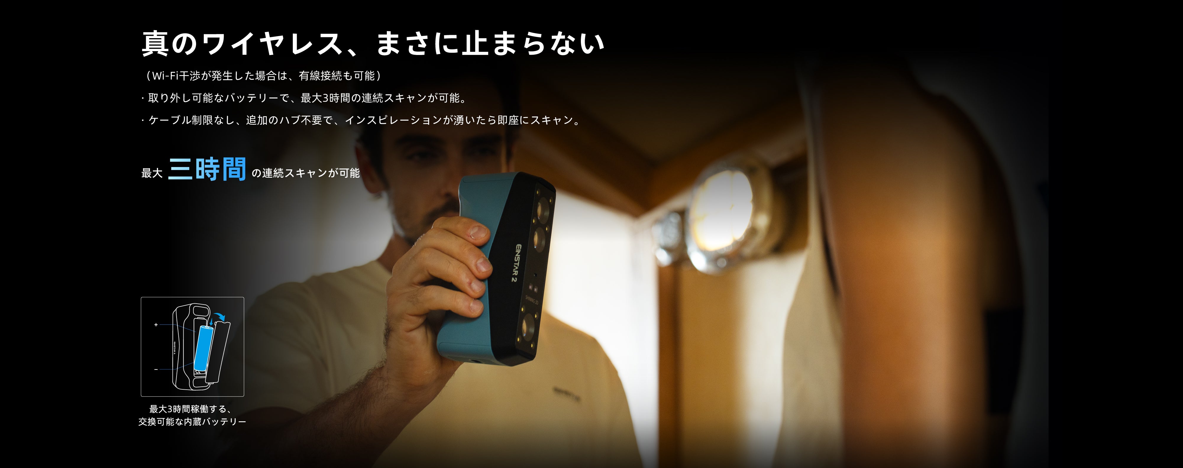 EINSTAR 2 has a built-in Wi-Fi module for wireless connection which means there is no additional accessories required, save setup time.The whole scanning process is wireless. A USB Type-C cable connection is also available for stable operation in case of Wi-Fi interference.