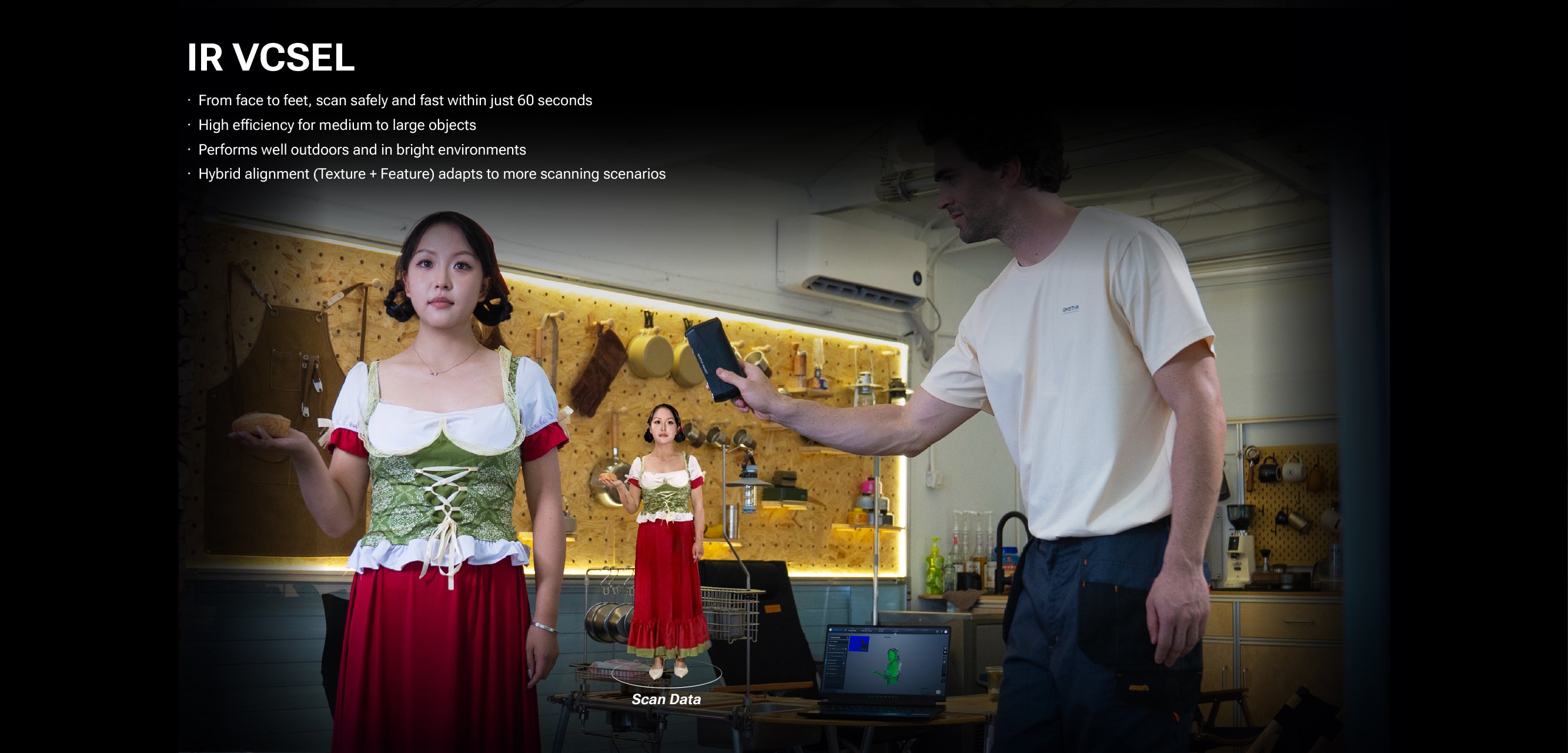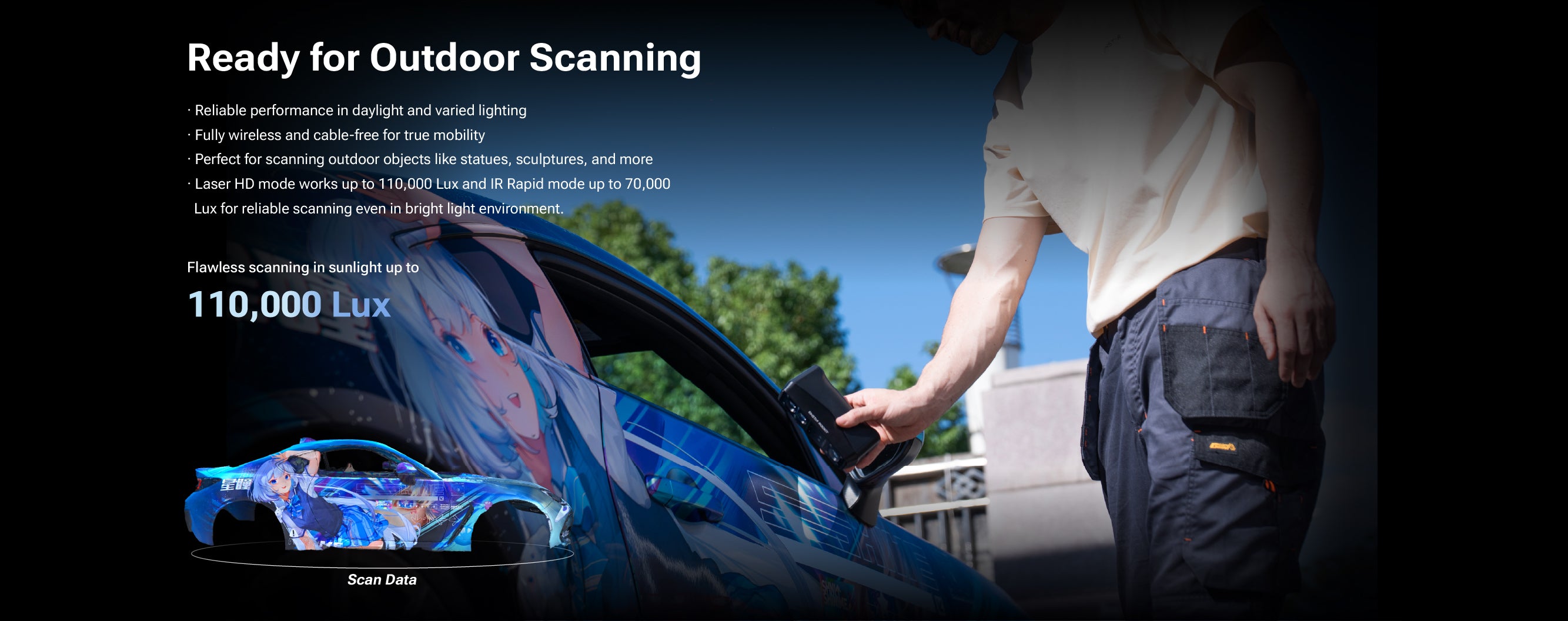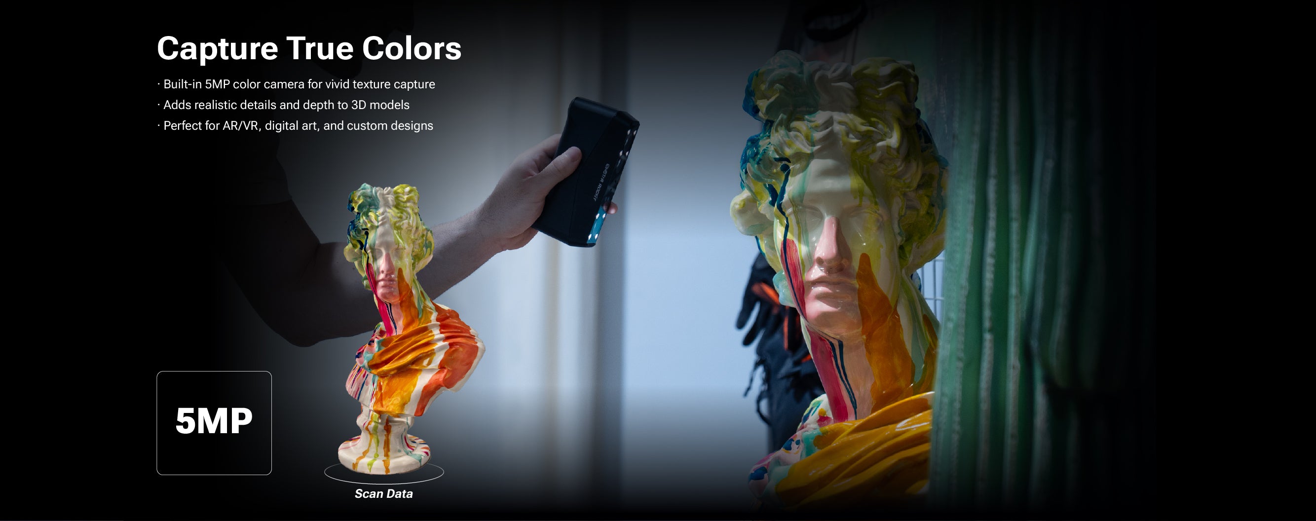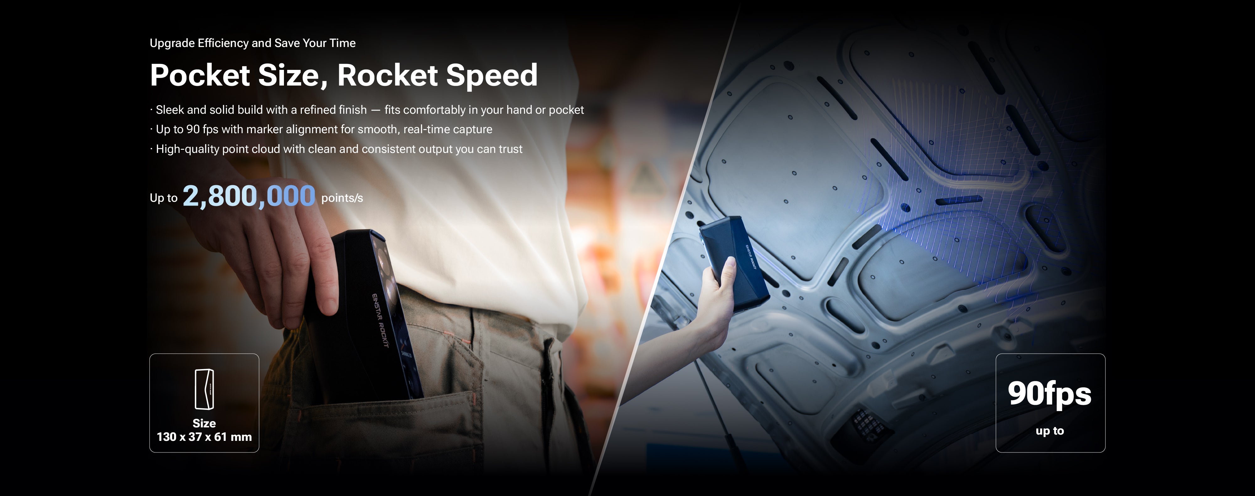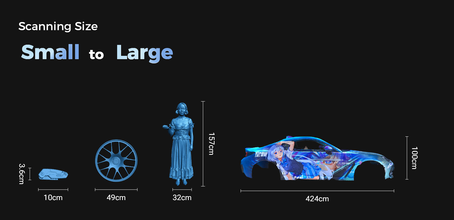 EINSTAR Rockit is a portable and high-efficiency 3D scanner ideal for users like product designers, Car engineers, 3D artists and makers. Its applications include automotive part scanning, digital art creation, AR/VR content production, and scanning outdoor objects like statues and sculptures.