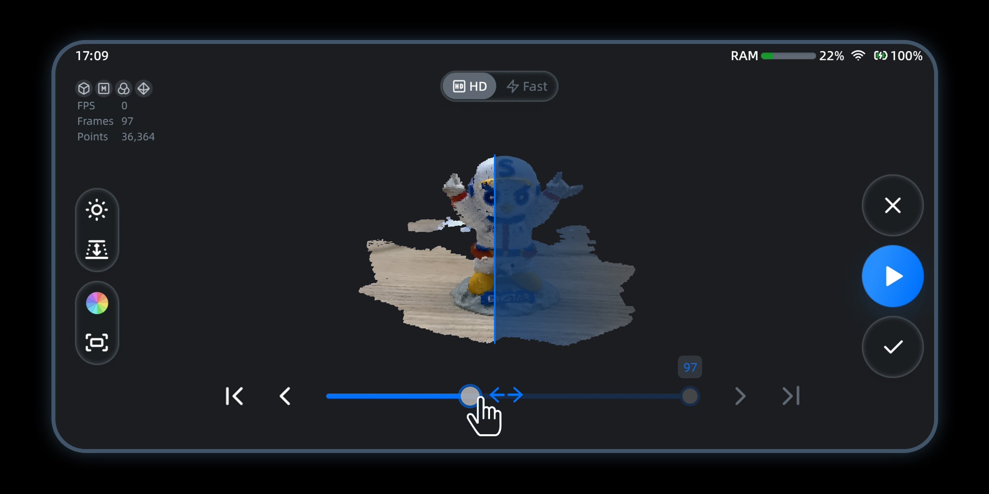 When scanning objects placed on a base-plane, such as turntable, table, or the ground, enabling this feature will intelligently remove the detected base-plane before and during the 3D scan.